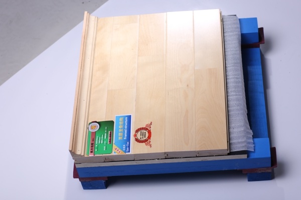 其中籃球場木地板鋪裝工程是籃球場館建設工程的重要內容。現在一般都是甲方招標,需要籃球場木地板廠家或籃球場木地板工程隊投標。歐氏運動木地板工程師,比賽館木地板地板面層采用國產較好的楓木材制作的體育專用木地板,面層地板成品厚度不小于22mm,寬度為50-70mm左右,所有木地板的地板條寬度必須一致。地板條長度不小于500mm的面板限占總面積15%,長度大于mm以上的面板占總面積85%。運動木地板結構總厚度150mm。其它練習館的地板面層采用國產較好的楓木材制作的體育專用木地板,面層地板成品厚度不小于18mm,寬度為50-60mm左右,所有木地板的地板條寬度必須一致。地板條長度不小于500mm的面板限占總面積15%。